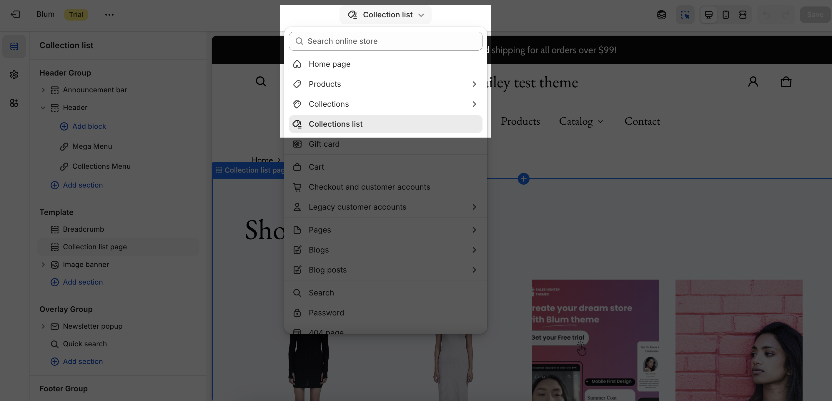 Aside from this section, you can add or remove any other sections on the Blum Collection List template.