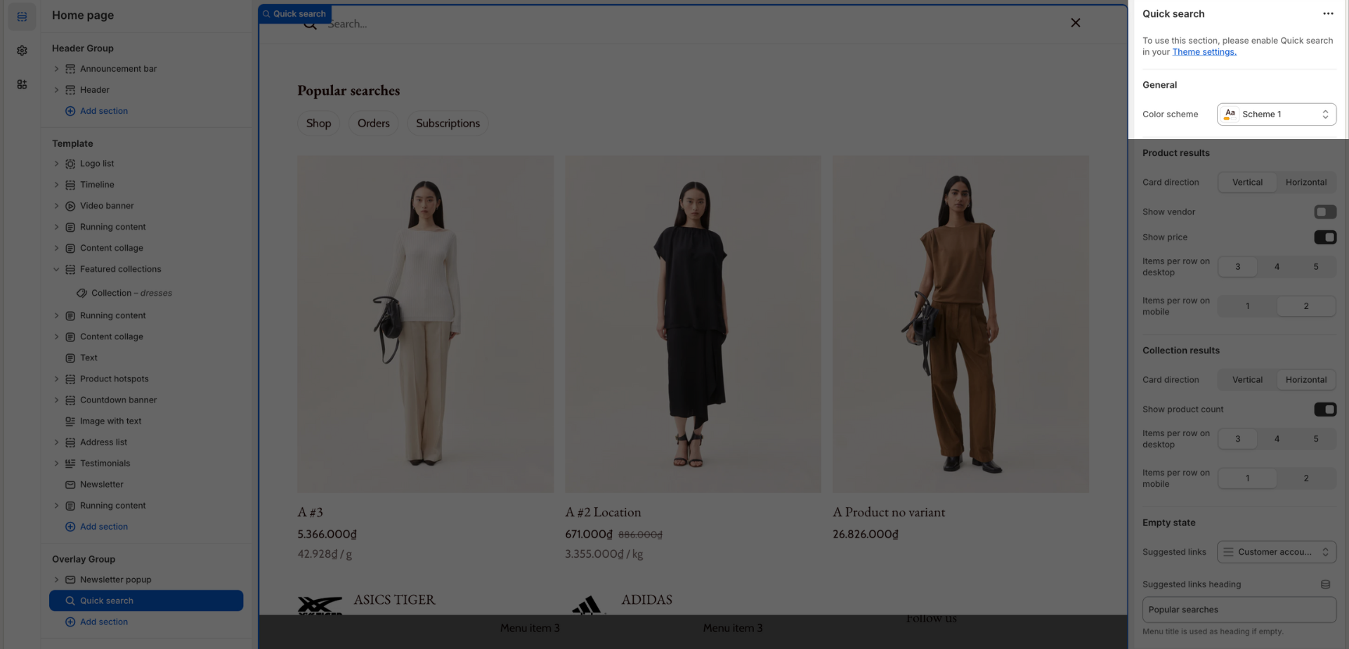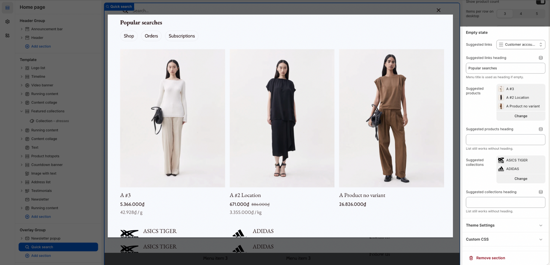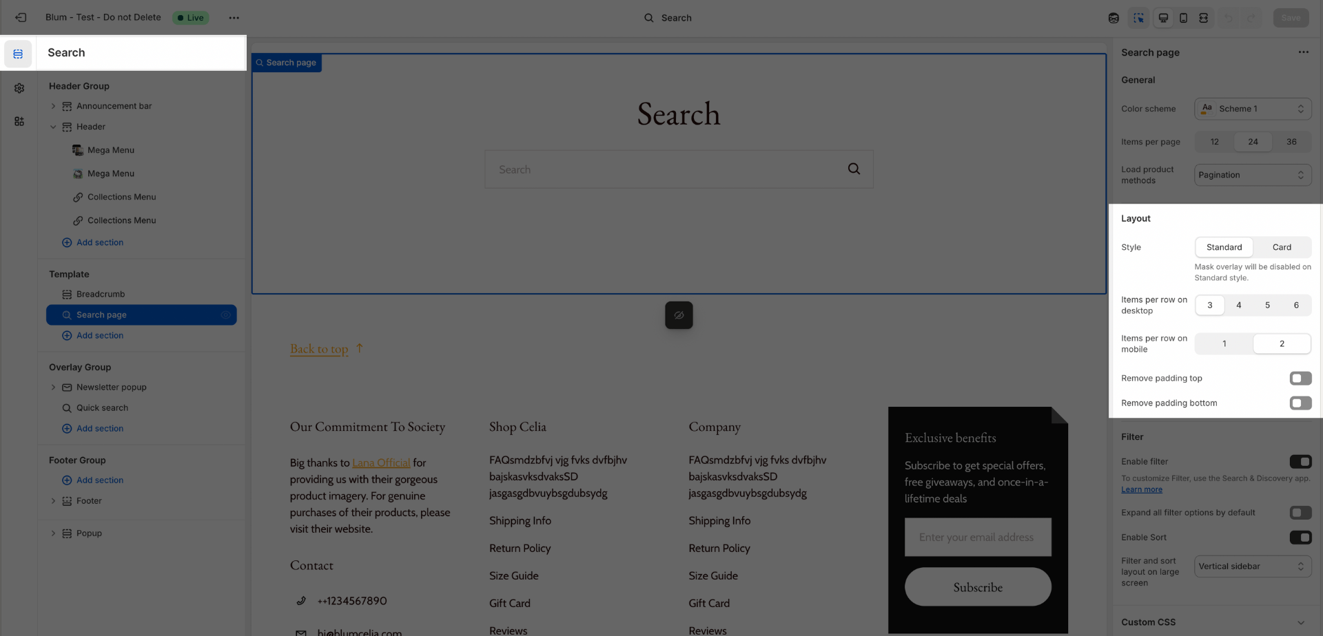 Aside from this section, you can freely add or remove any other sections on the Search Result template.