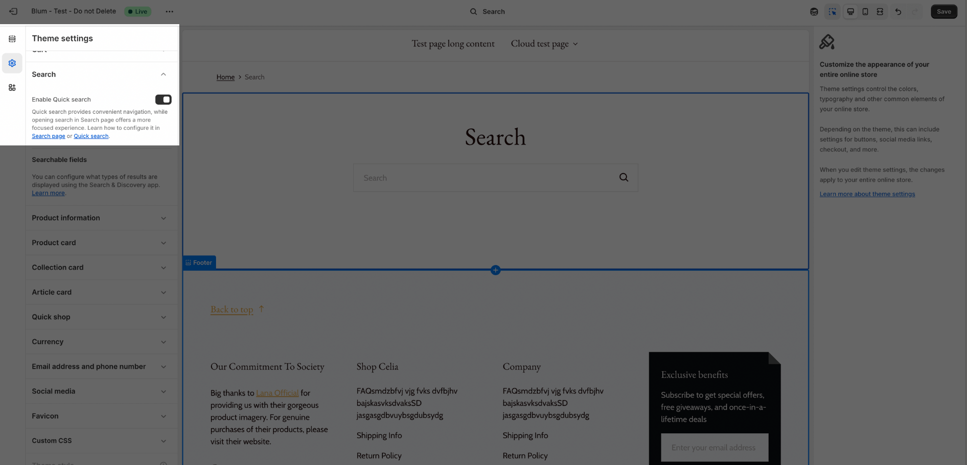 - In the sidebar, find Theme settings and locate the Search section.