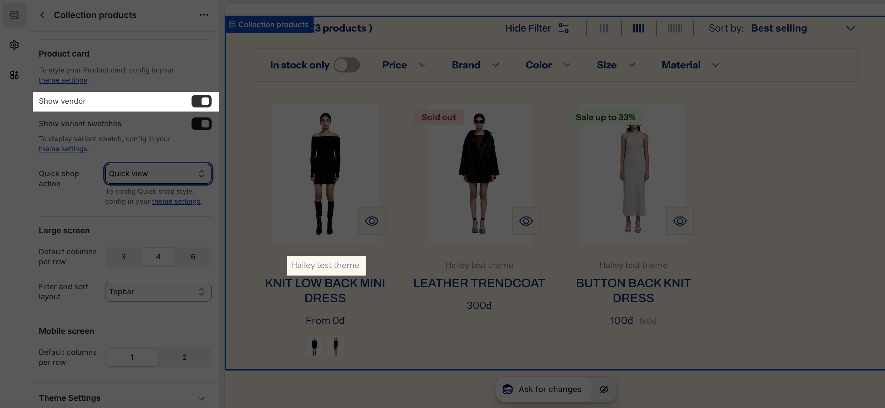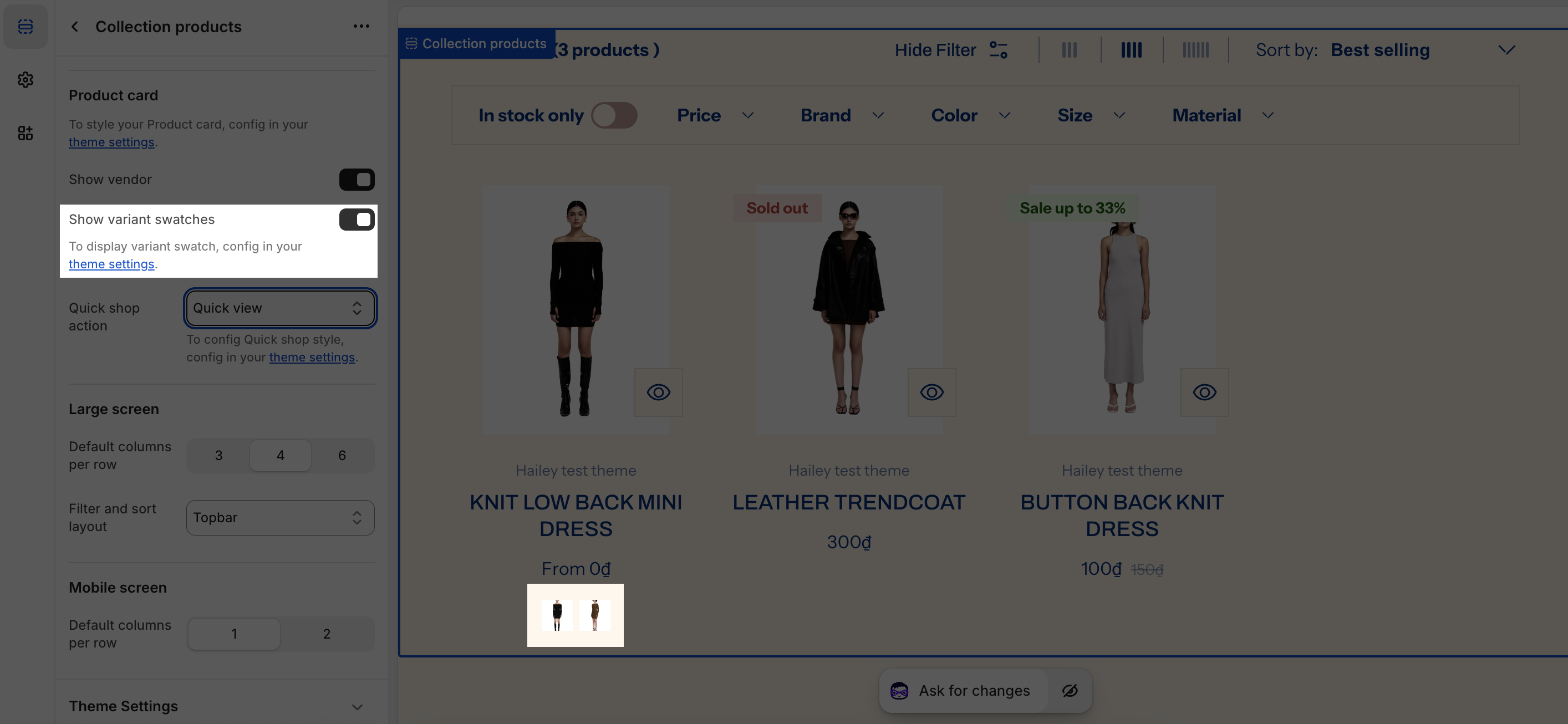 You can also choose to Show variant swatches. To display variant swatch, configure all the settings in the theme settings.