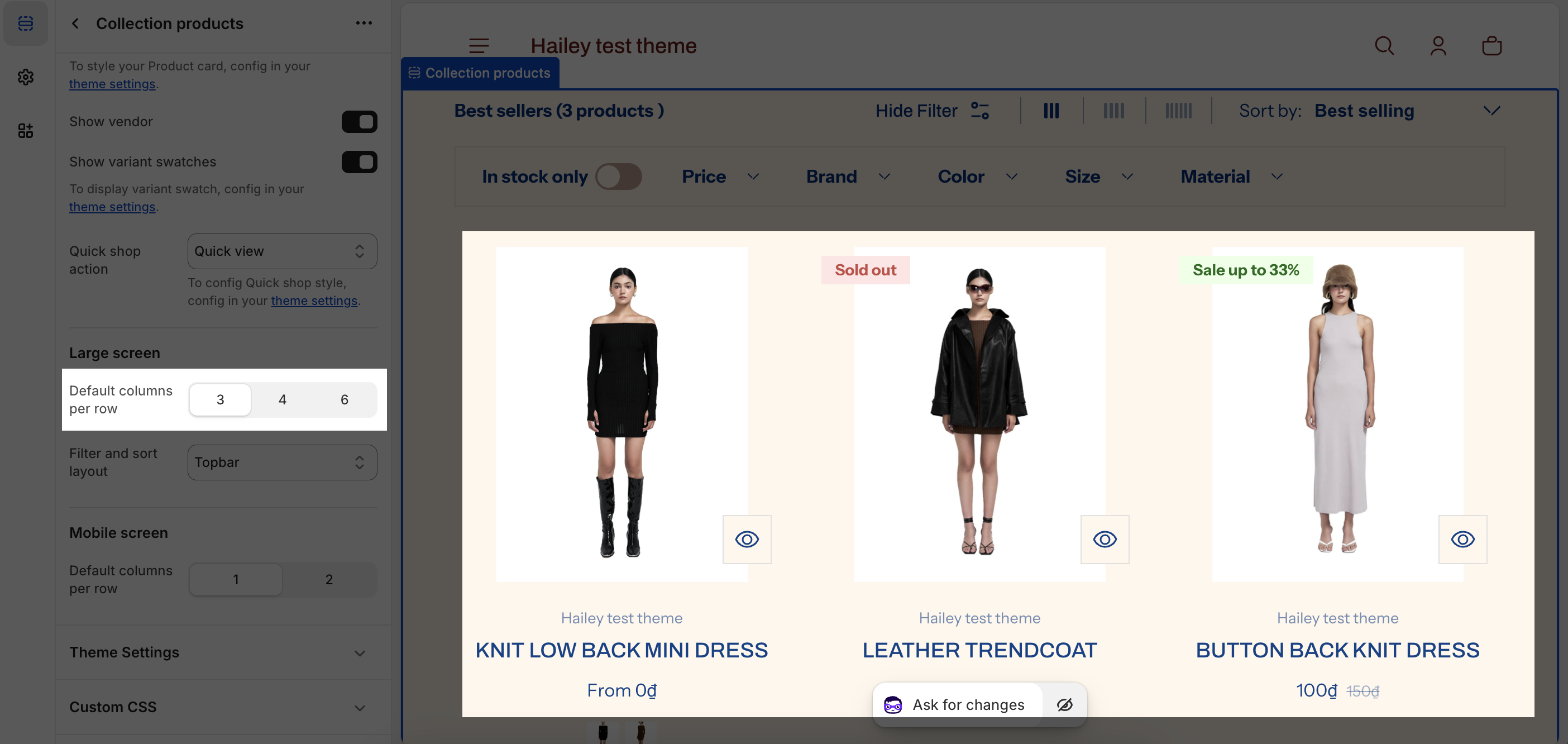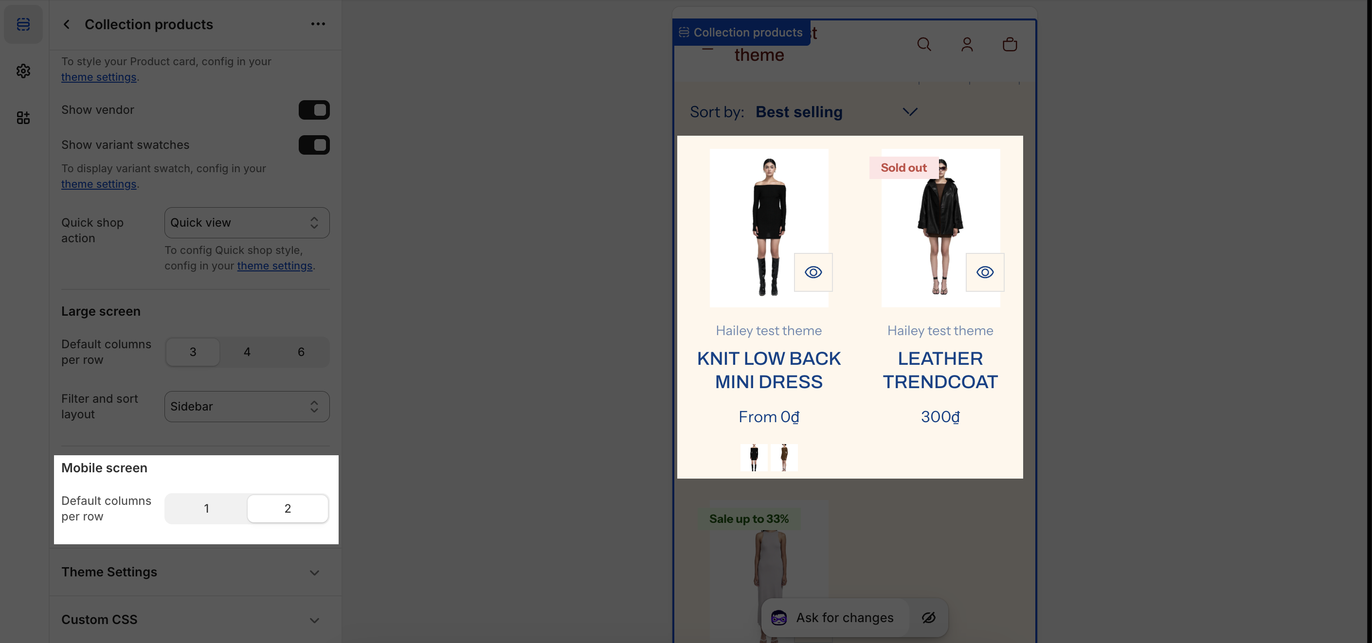 Shine Theme Collection Products Section Configuration
