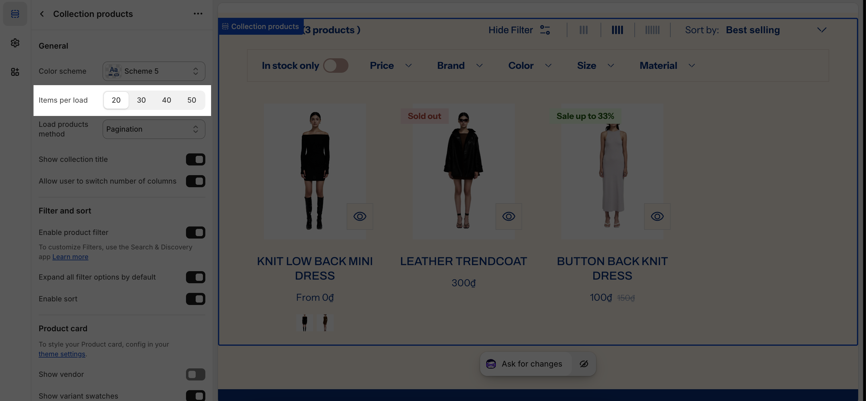 On each collection, you can choose to display between, 20, 30, 40, and 50 Items per load.