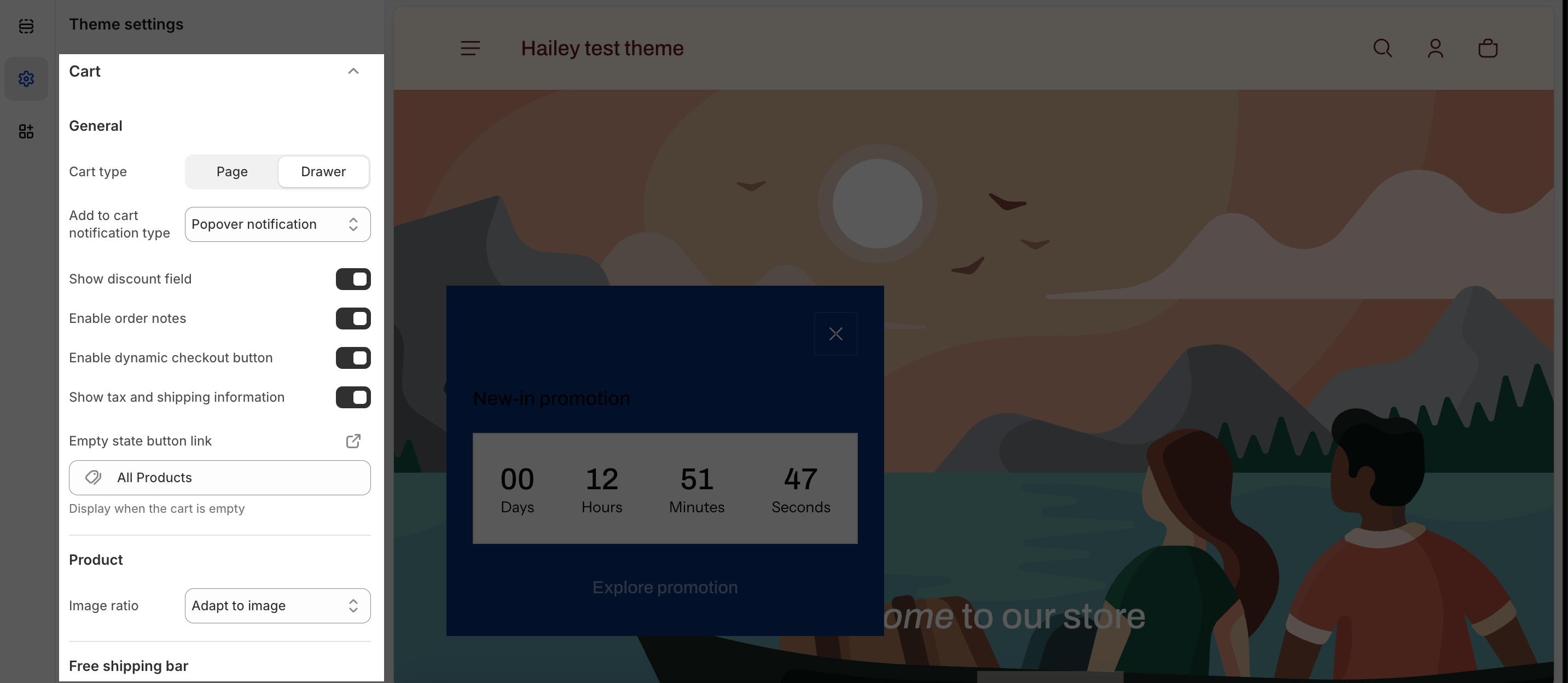 The Cart settings control how customers view and interact with their shopping cart. It affects what information they see, how they’re notified about items added, and how shipping information is displayed.