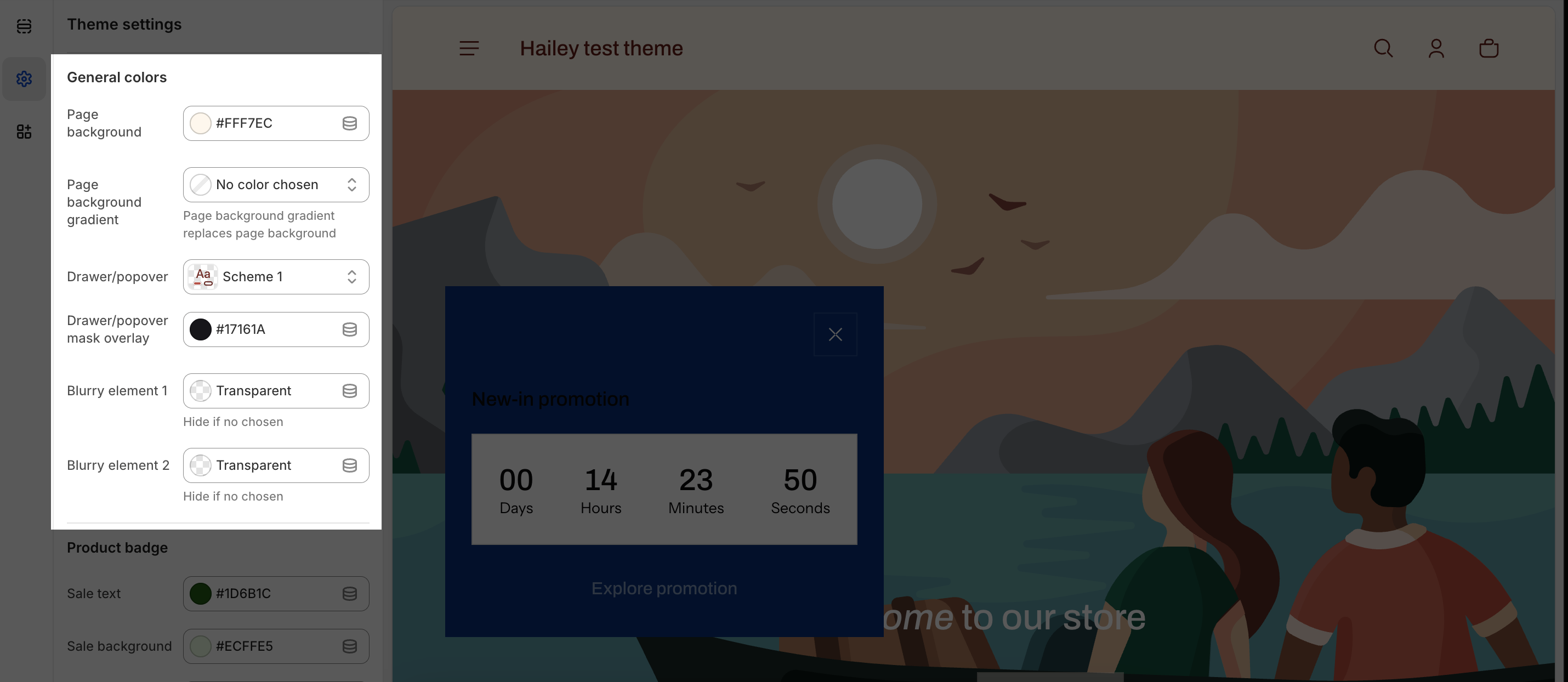 - Drawer/popover mask overlay: When you open a drawer or popover menu (like a sidebar menu or a cart summary), the rest of the page is often covered with a slightly opaque layer, which is the mask overlay. This overlay helps to focus the user’s attention on the drawer or popover by visually muting the rest of the page. You can change the color code to the color which you want to match with the color scheme.