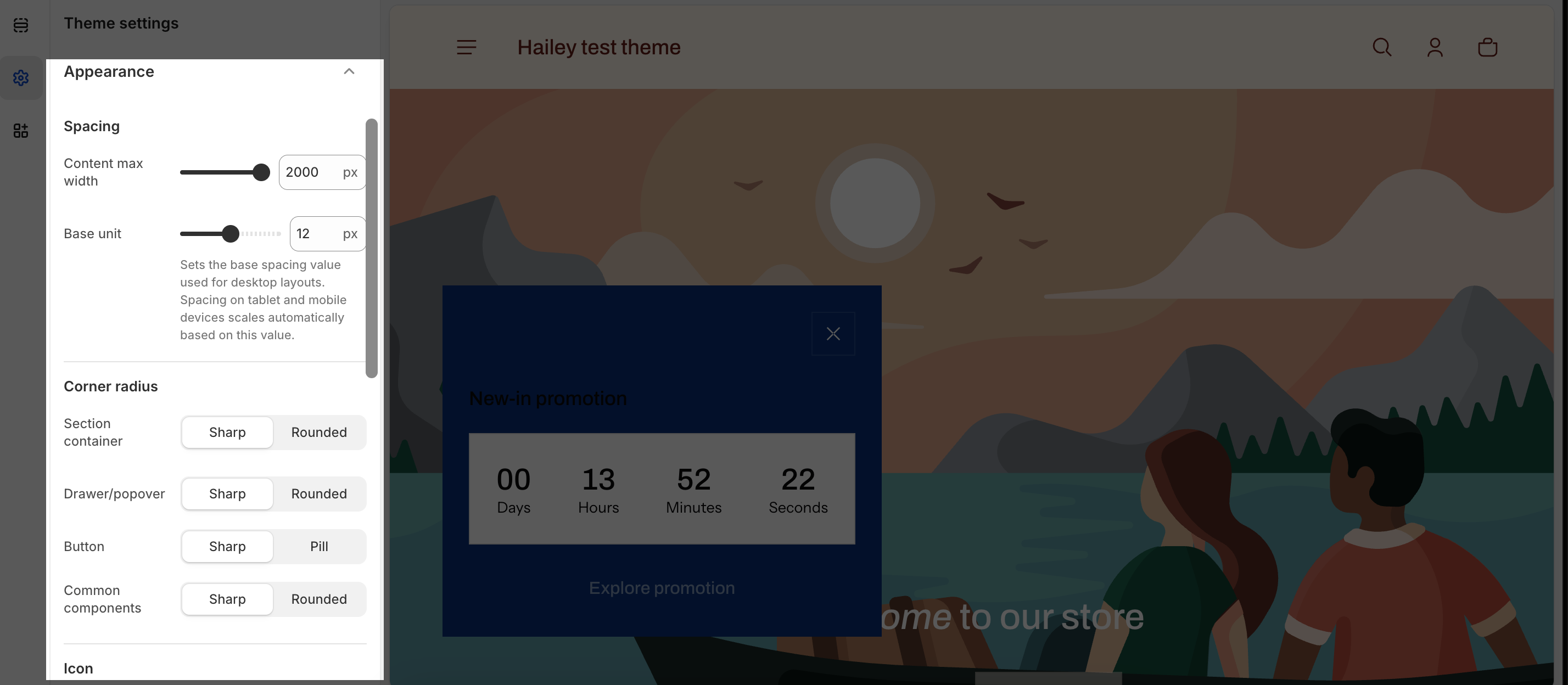 Controls the overall visual design and layout of your store – spacing, rounded corners, icon styles, and link behavior.